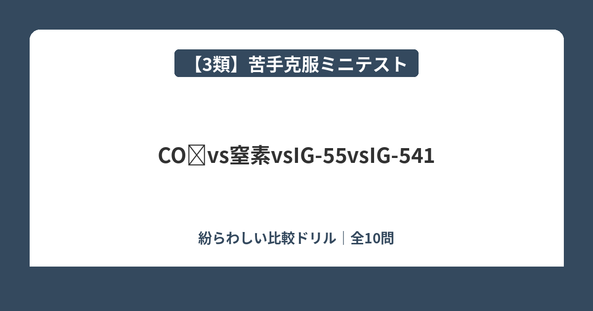 3類(ガス消火設備)の各分野を横断した総復習問題です。これまでのミニテストで学んだ内容を実力確認しましょう。