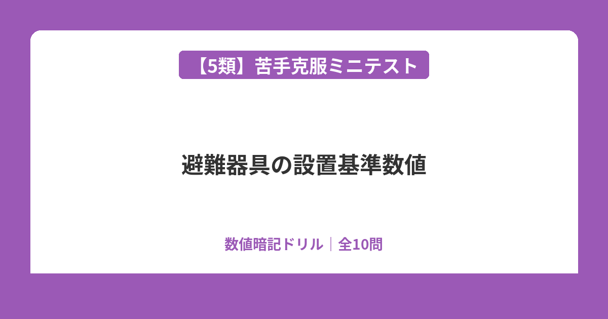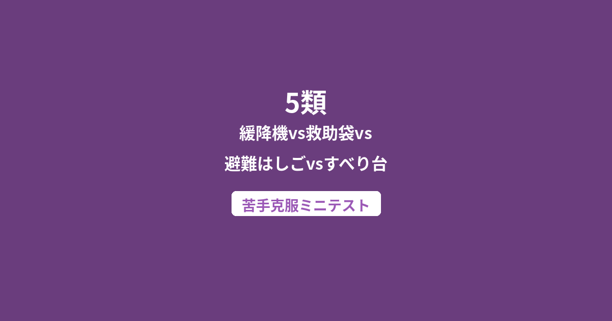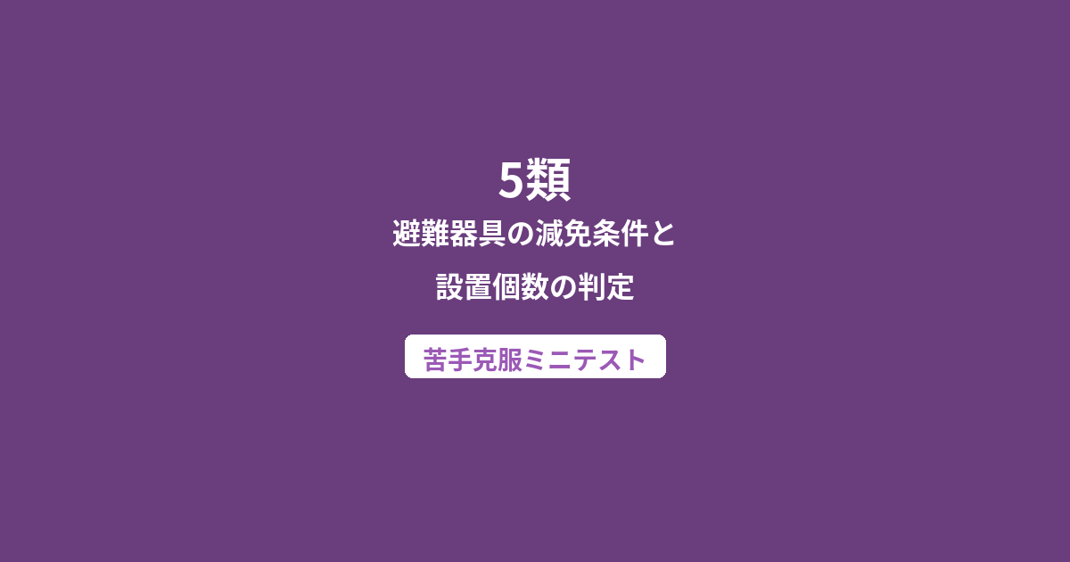 5類(避難器具)の各分野を横断した総復習問題です。器具の種類・設置基準・使用方法・減免条件を総合的に確認しましょう。