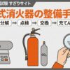 つまり、点検(外観点検・機能点検)で不良が見つかった消火器に対して行うのが「整備」です。整備の結果、消火器を正常な状態に戻すことがゴールになります。