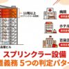 屋内消火栓設備の設置義務がある建物でも、スプリンクラー設備水噴霧消火設備などが有効に設置されている場合は、屋内消火栓設備の設置が免除されることがあります。
