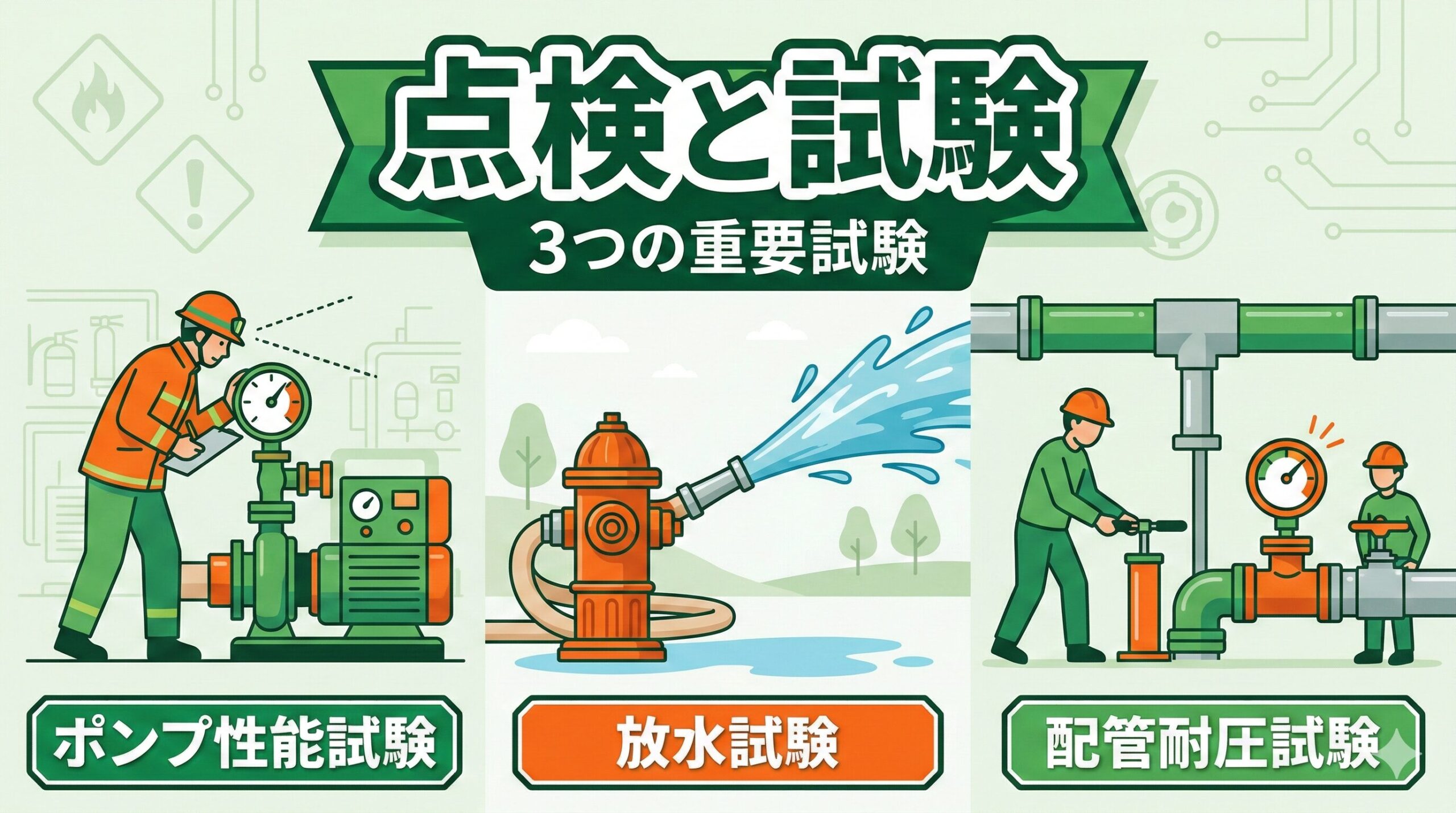 - バルブの位置は適切か ── 逆止弁がポンプ吐出側にあるか、制御弁が流水検知装置の手前にあるか