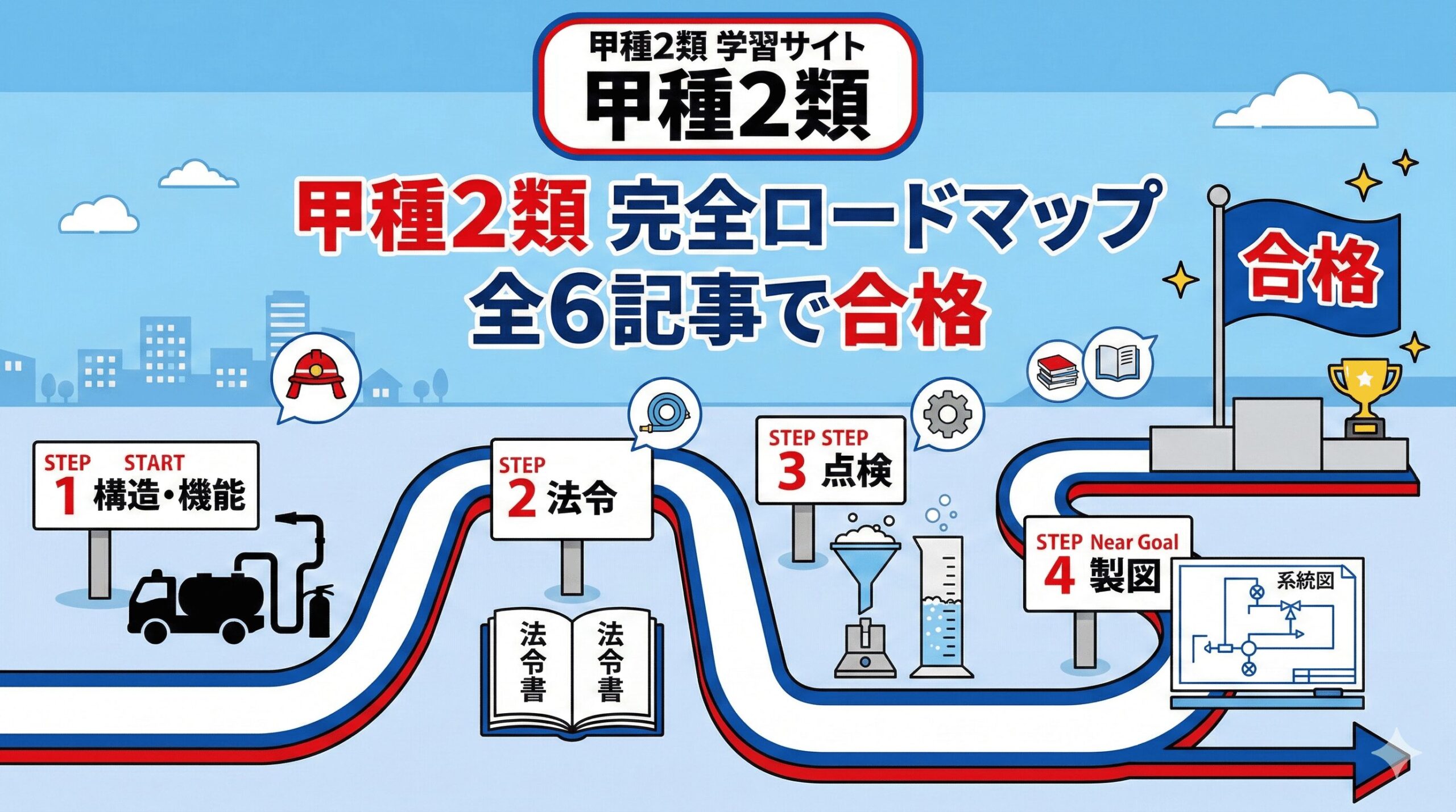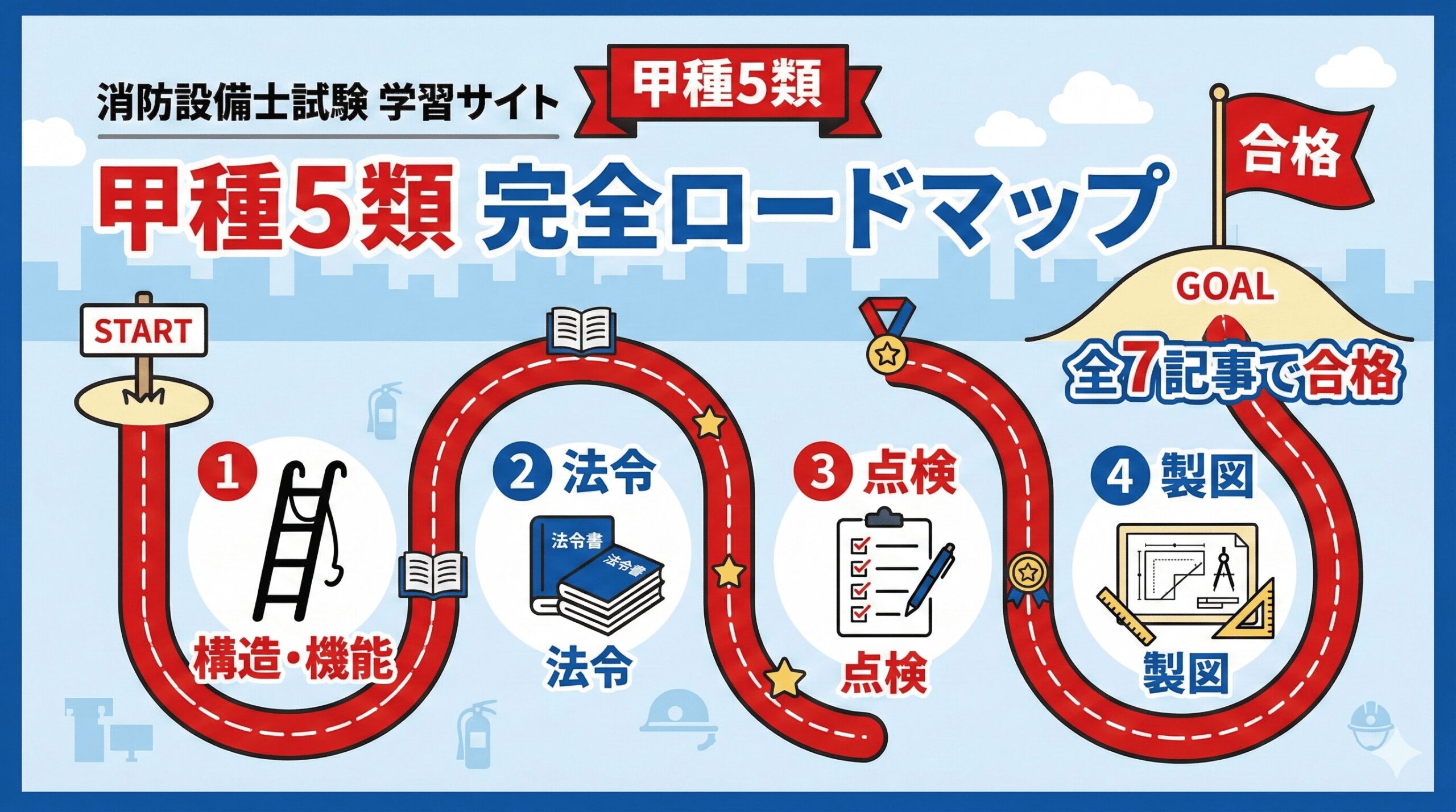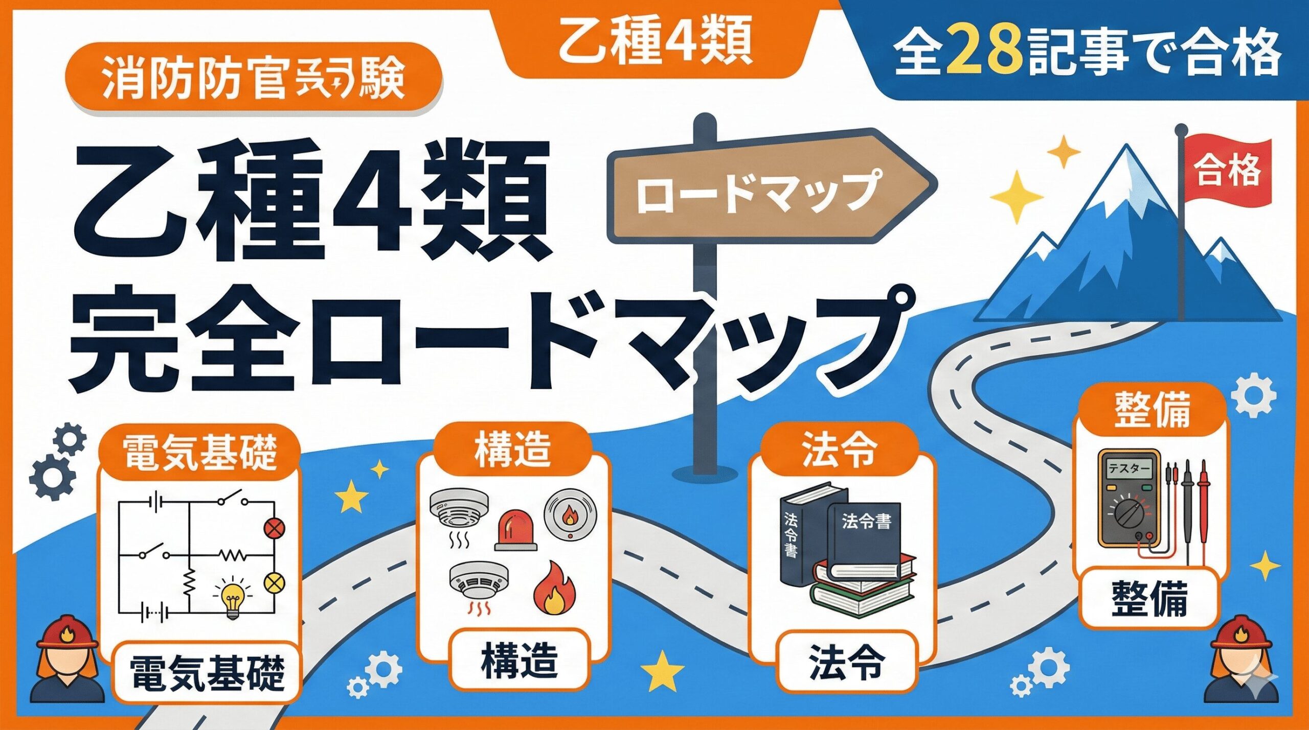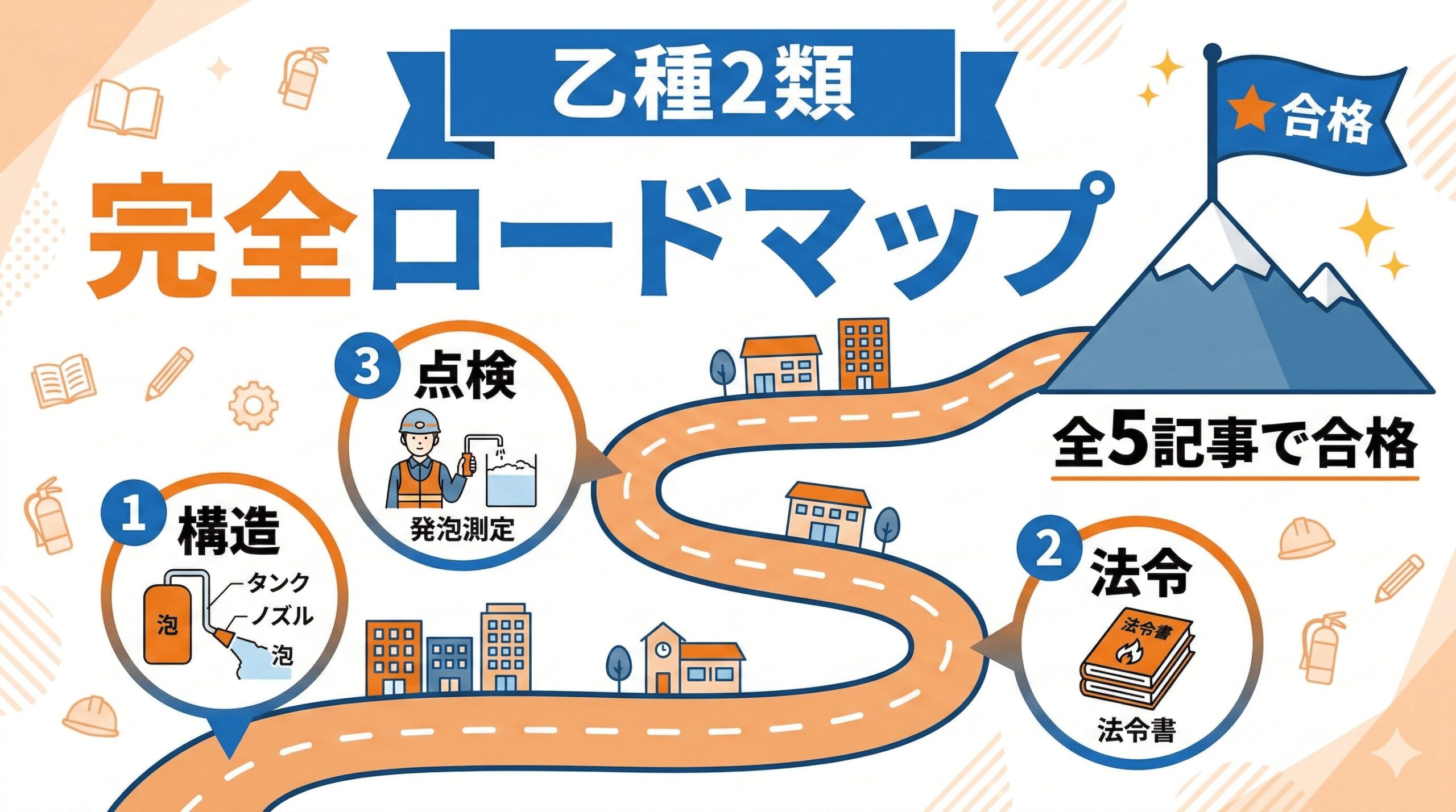 この記事は、消防設備士乙種2類の試験対策を全5記事で完全カバーするロードマップです。
