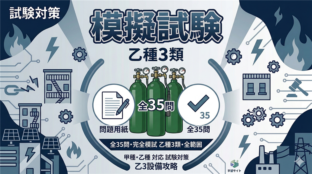 この模擬試験は、甲種5類の本番と同じ構成・同じ問題数で作成したオリジナル問題です。