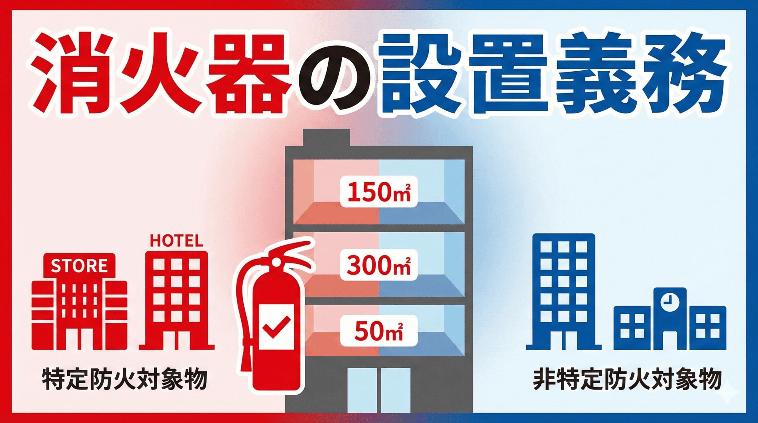 - 何を? → 消火器・自動火災報知設備・スプリンクラーなど、すべての消防用設備等