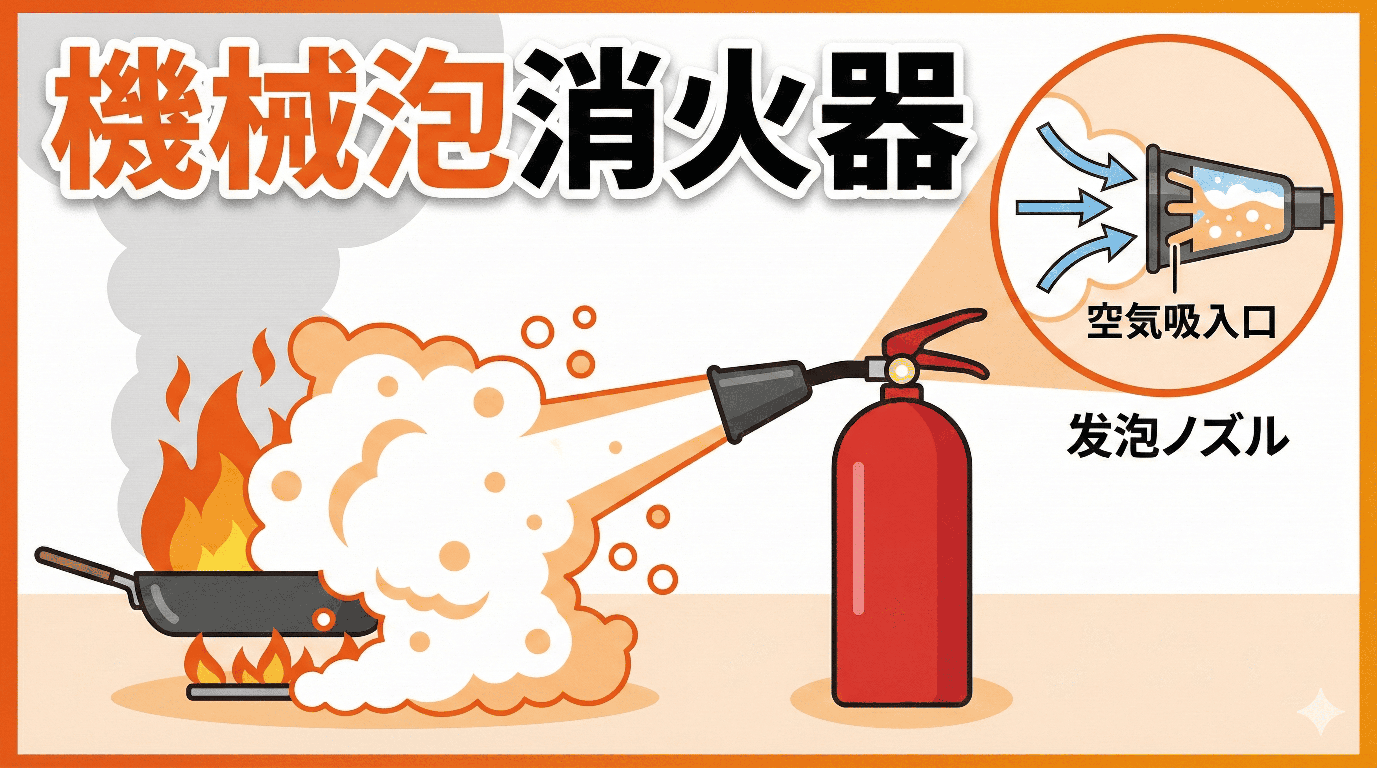 なぜ再燃を防げるのか? アルカリ金属塩の水溶液が燃焼面にしみ込み、冷却効果で温度を下げると同時に、アルカリ成分が燃焼の連鎖反応(ラジカル反応)を化学的に断ちます。冷却と抑制のダブル効果で、粉末消火器よりも再燃しにくいのです。
