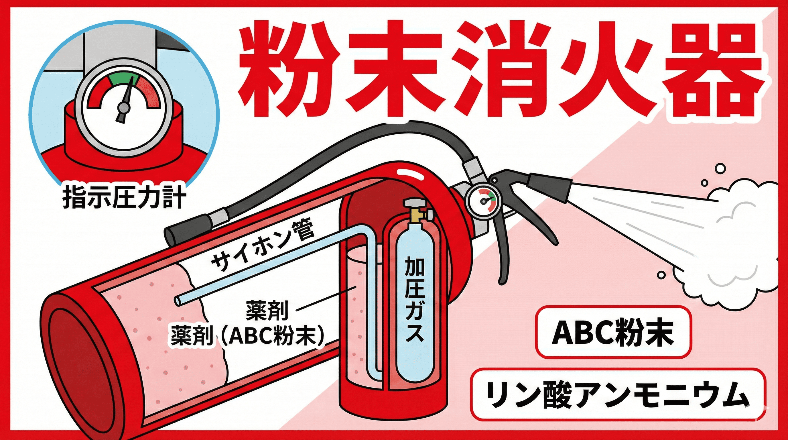 粉末消火器とセットで試験に出ることが多い消火器です。粉末の弱点(再燃しやすい)を補うのが強化液消火器――この関係を押さえると、試験問題がグッと解きやすくなります。