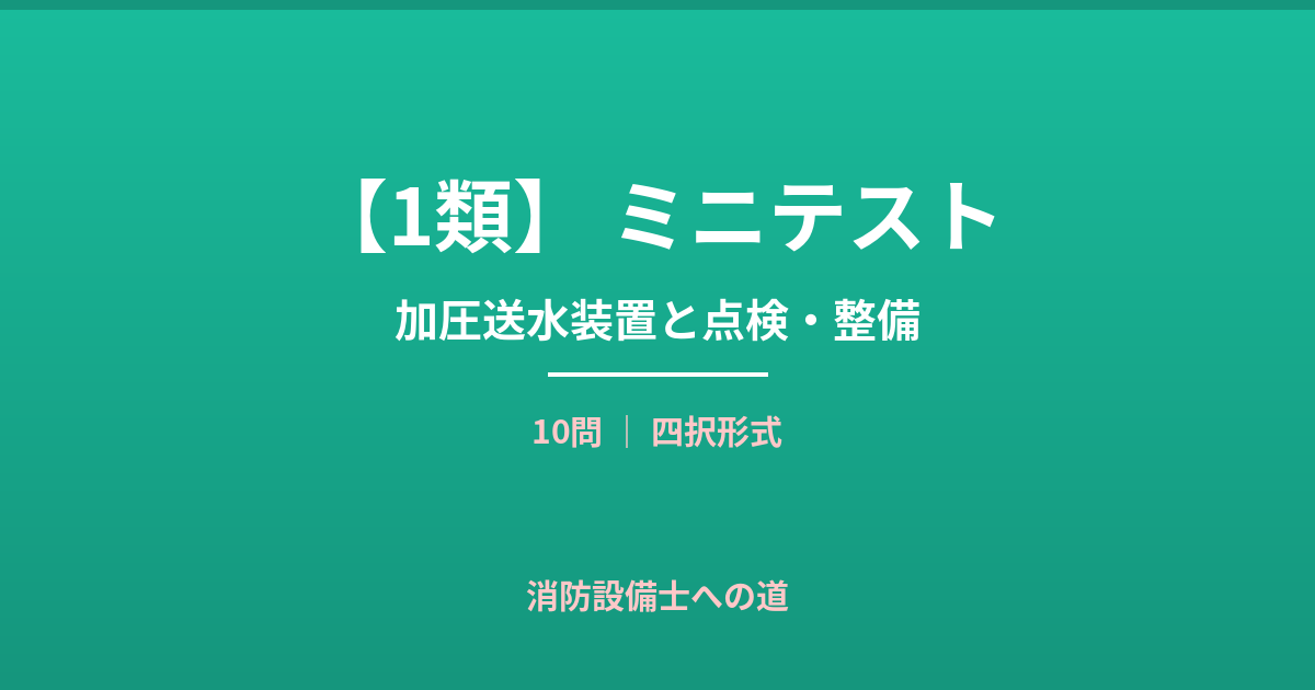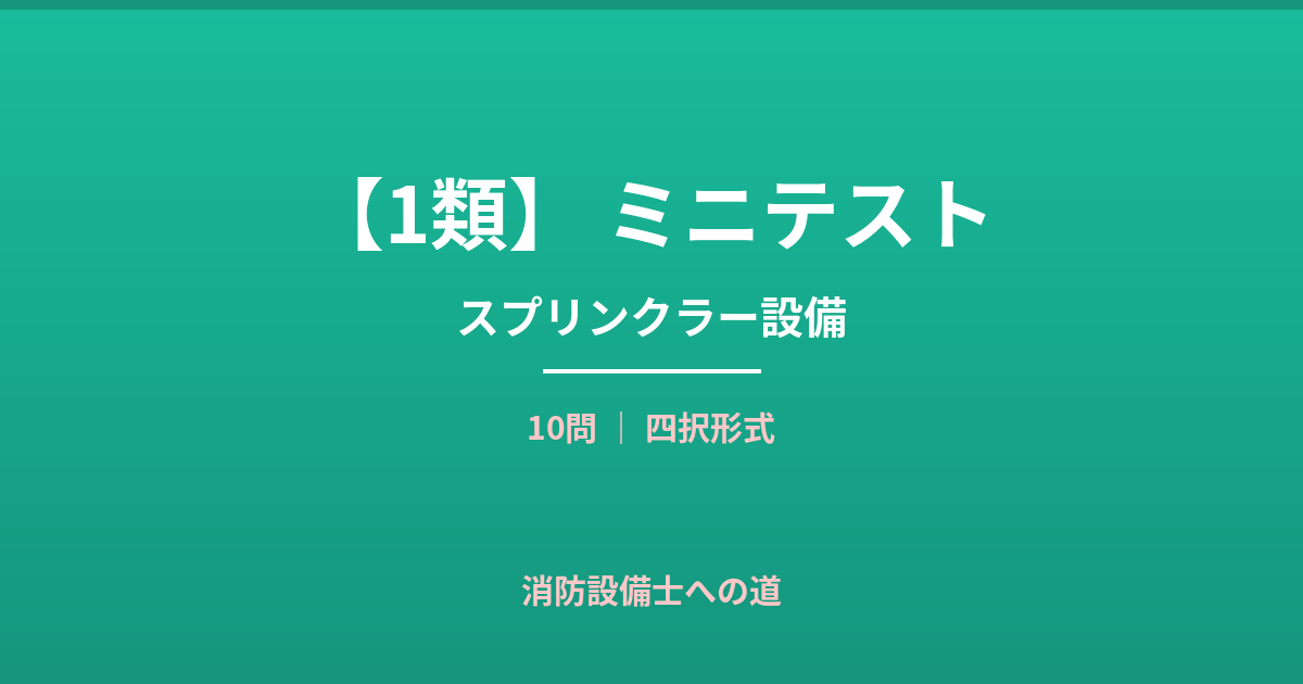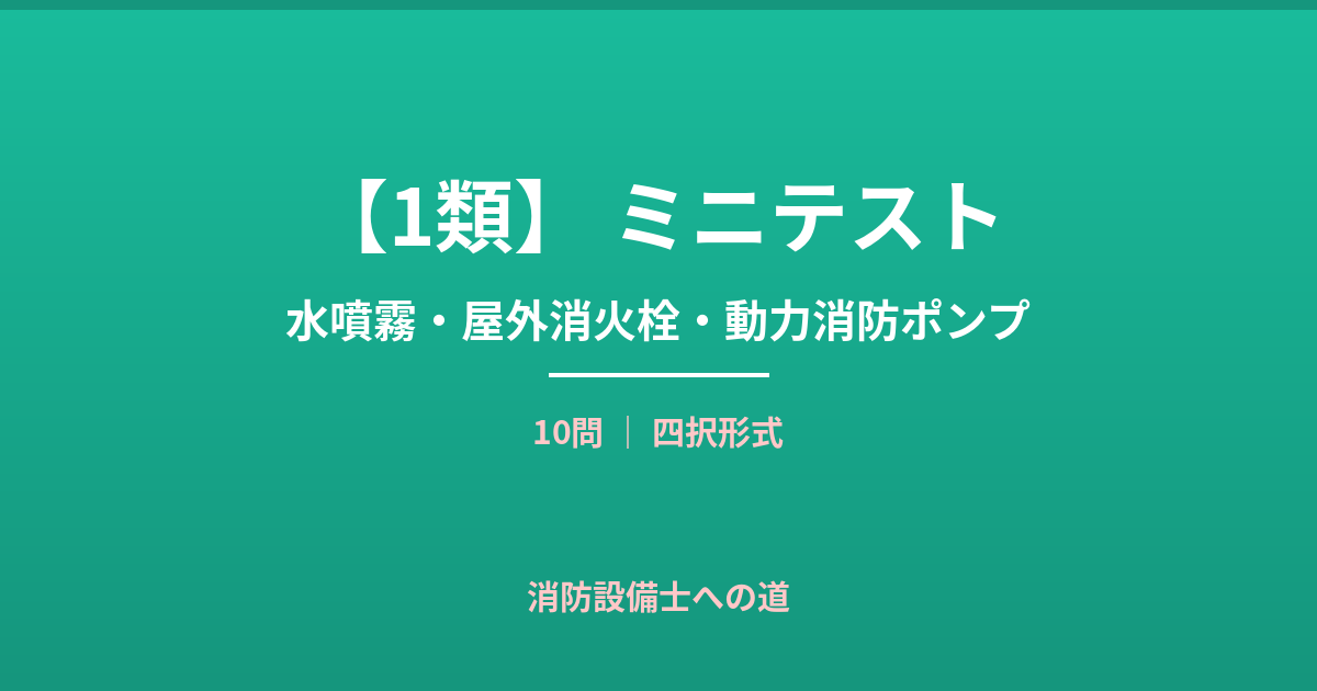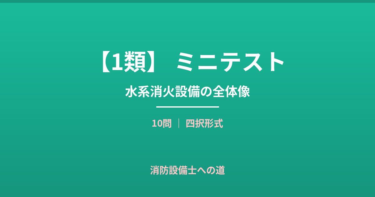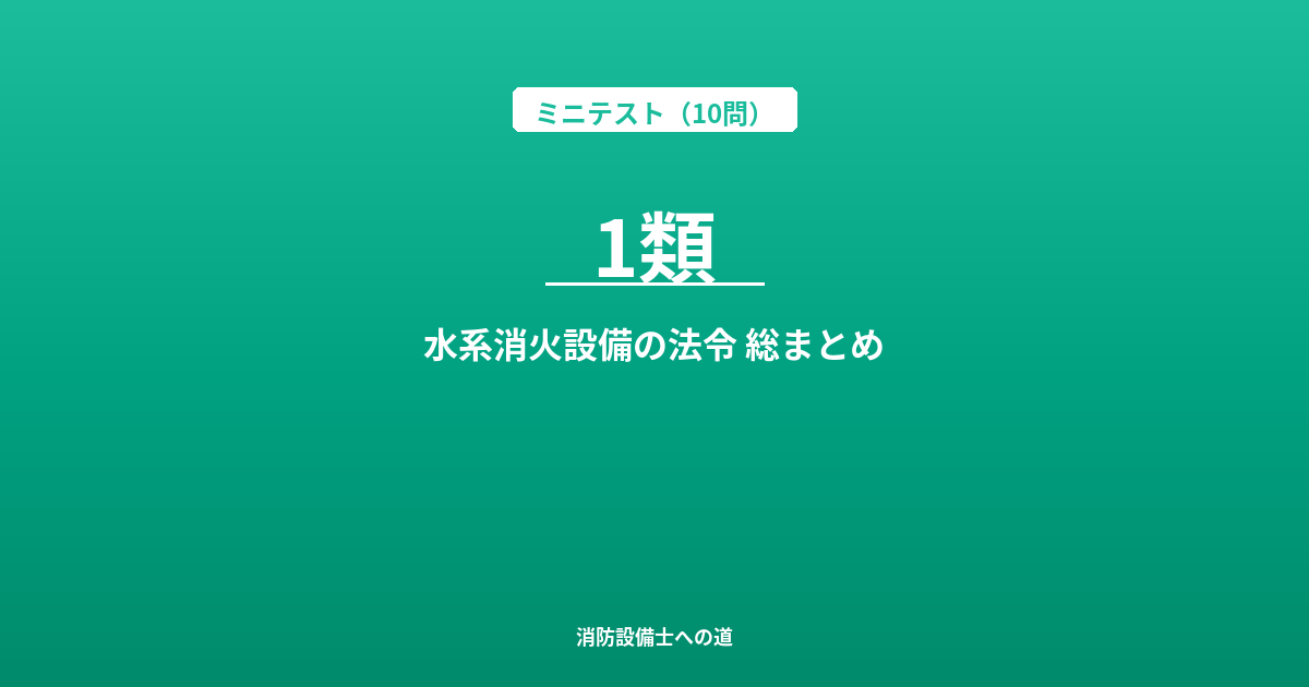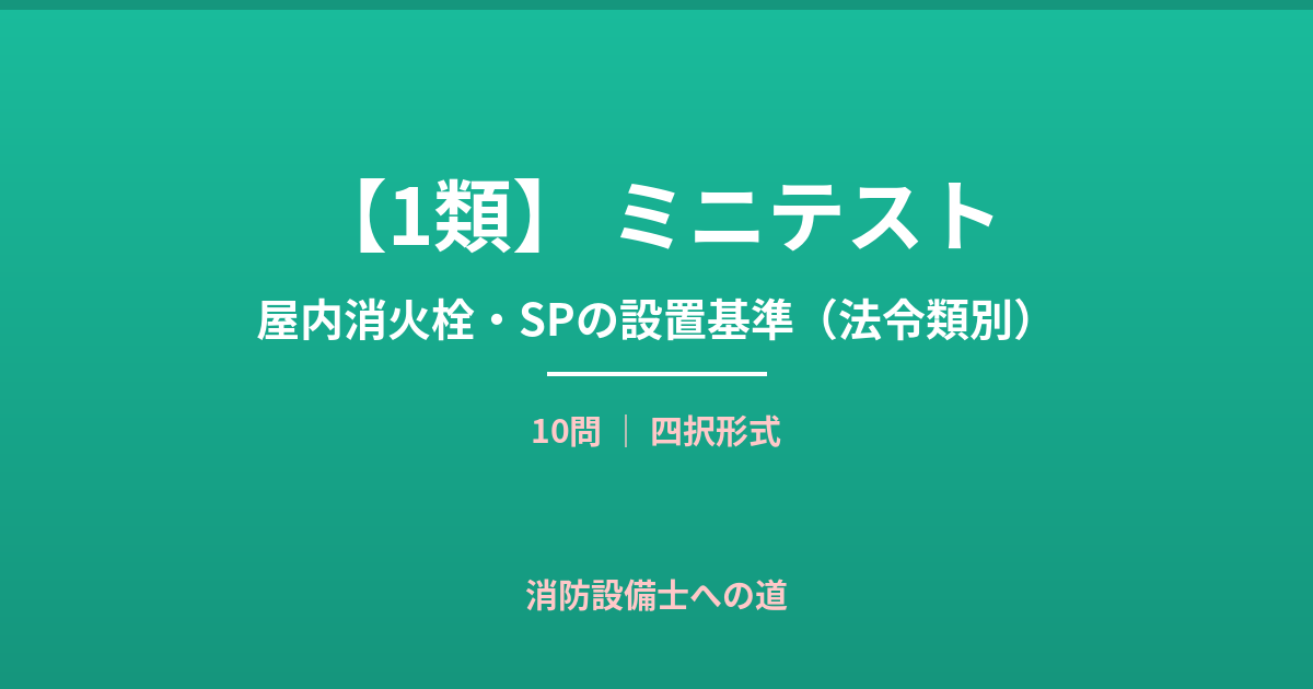 水系消火設備の法令 総まとめ ミニテスト(10問) 屋内消火栓の設置義務(令11条)、SPの設置義務(令12条)、SP技術基準、水噴霧・屋外消火栓・動力消防ポンプの設置基準を横断的に出題する10問です。既存のミニテストとは異なる切り口で、法令の総合力を試しましょう。 元の記事で復習したい方はこちら: 「屋内消火栓設備の設置義務|施行令第11条をわかりやすく解説」 「スプリンクラー設備の設置義務|施行令第12条をわかりやすく解説」 「スプリンクラー設備の技術基準をわかりやすく解説」 「水噴霧・屋外消火栓・動 ...