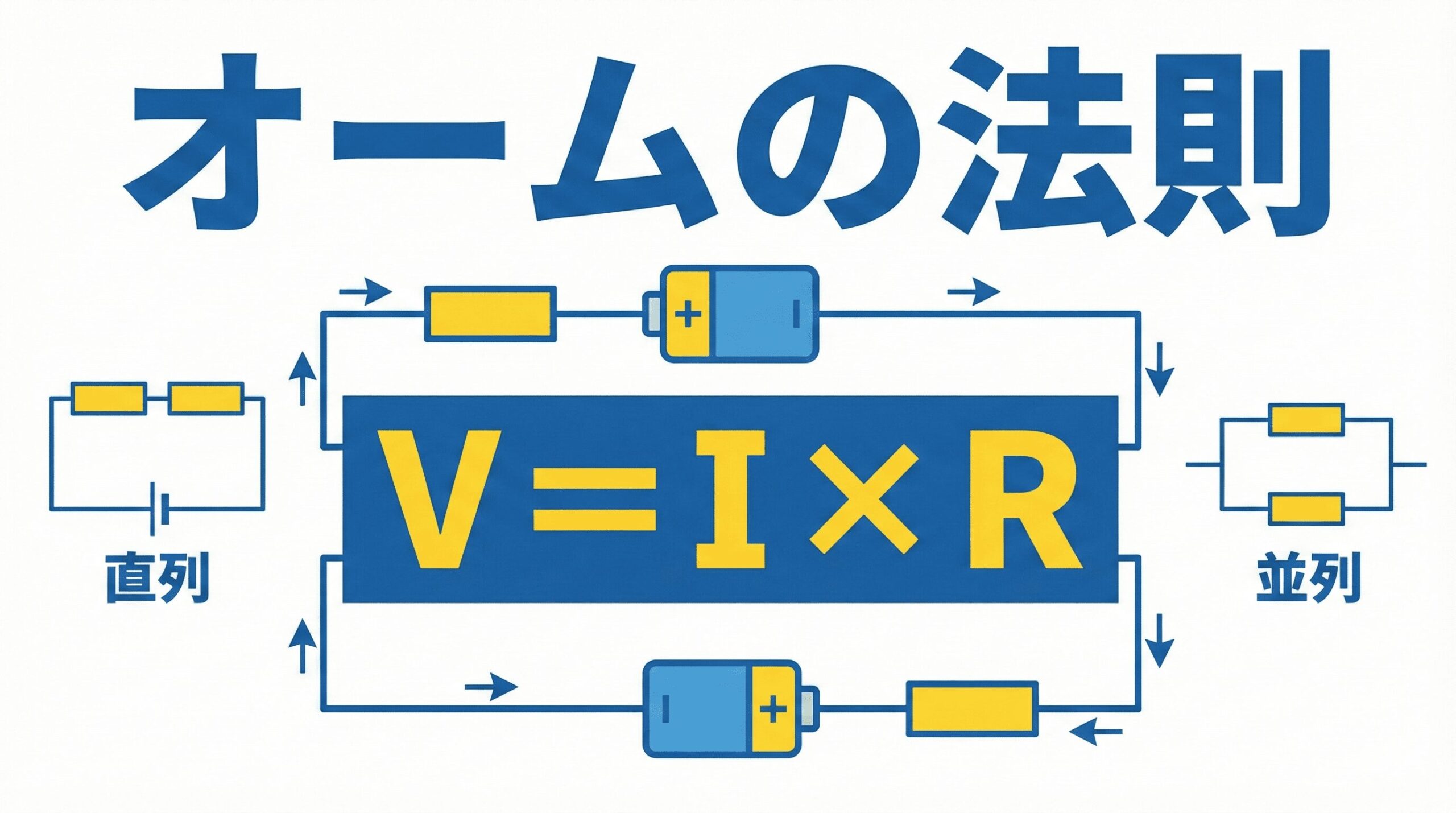 結論:オームの法則は「電圧=電流×抵抗」 結論から言います。 オームの法則とは、回路の中の電圧(V)・電流(I)・抵抗(R)の関係を表す、電気の最も基本的な公式です。 V = I × R 電圧(V)= 電流(A)× 抵抗(Ω) この公式さえ押さえれば、あとは変形するだけで電流も抵抗も求められます。 甲種4類の「電気に関する基礎知識」では、この公式を使った計算問題が毎回のように出題されます。ここでしっかり身につけましょう。 オームの法則の3つの変形 オームの法則は、求めたいものに合わせて3パターンに変形でき ...